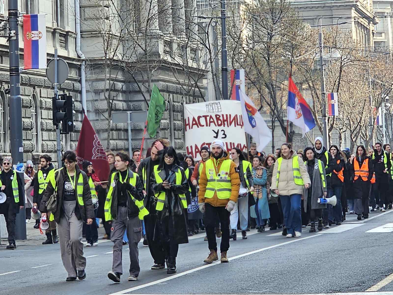 Просветните работници од белградските училишта, од Министерството за образование бараат поголема безбедност за учениците и наставниците, прекин на таргетирањето на наставниците, олеснување на административниот дел од нивната работа за да можат повеќе да им се посветат на учениците, а побараа и измени на законот за штрајк на наставниците и за изборот на директор.