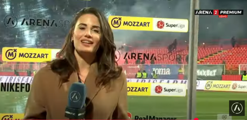 Интересното е во тоа што додека тренерот на гостите, Томислав Сивиќ даваше изјава директно на Арена ТВ, во позадина се гледаше тепачката. Сепак водителката и Сивиќ најпрофофесионално си ја завршија својата работа без разлика што се случуваше на трибините.