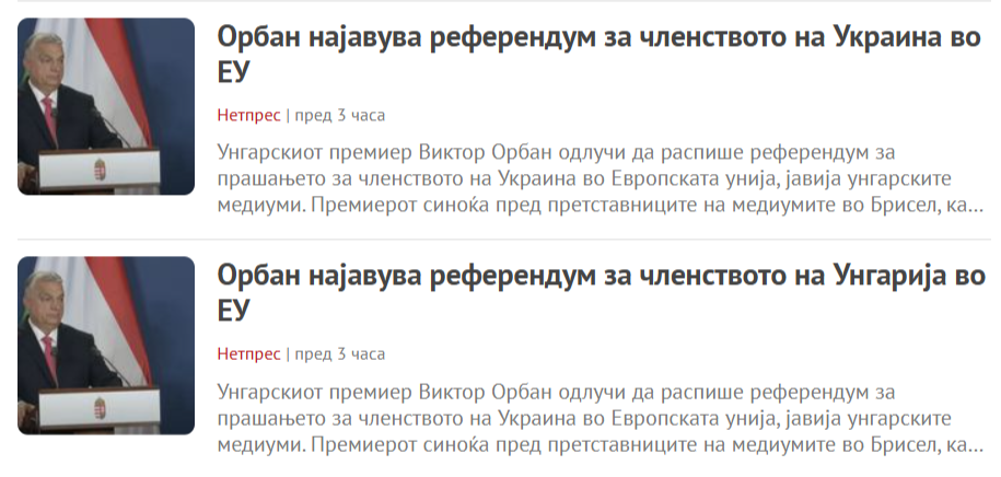 Изјава на унгарскиот претседател Виктор Орбан по вонредниот самит на ЕУ на 06.03.2025 г., за тоа дека планира да одржи референдум во неговата Унгарија за проширувањето на ЕУ со Украина, се претвори во дезинформација предизвикана од погрешен наслов, пренесуваме текст во целост од Вистиномер.