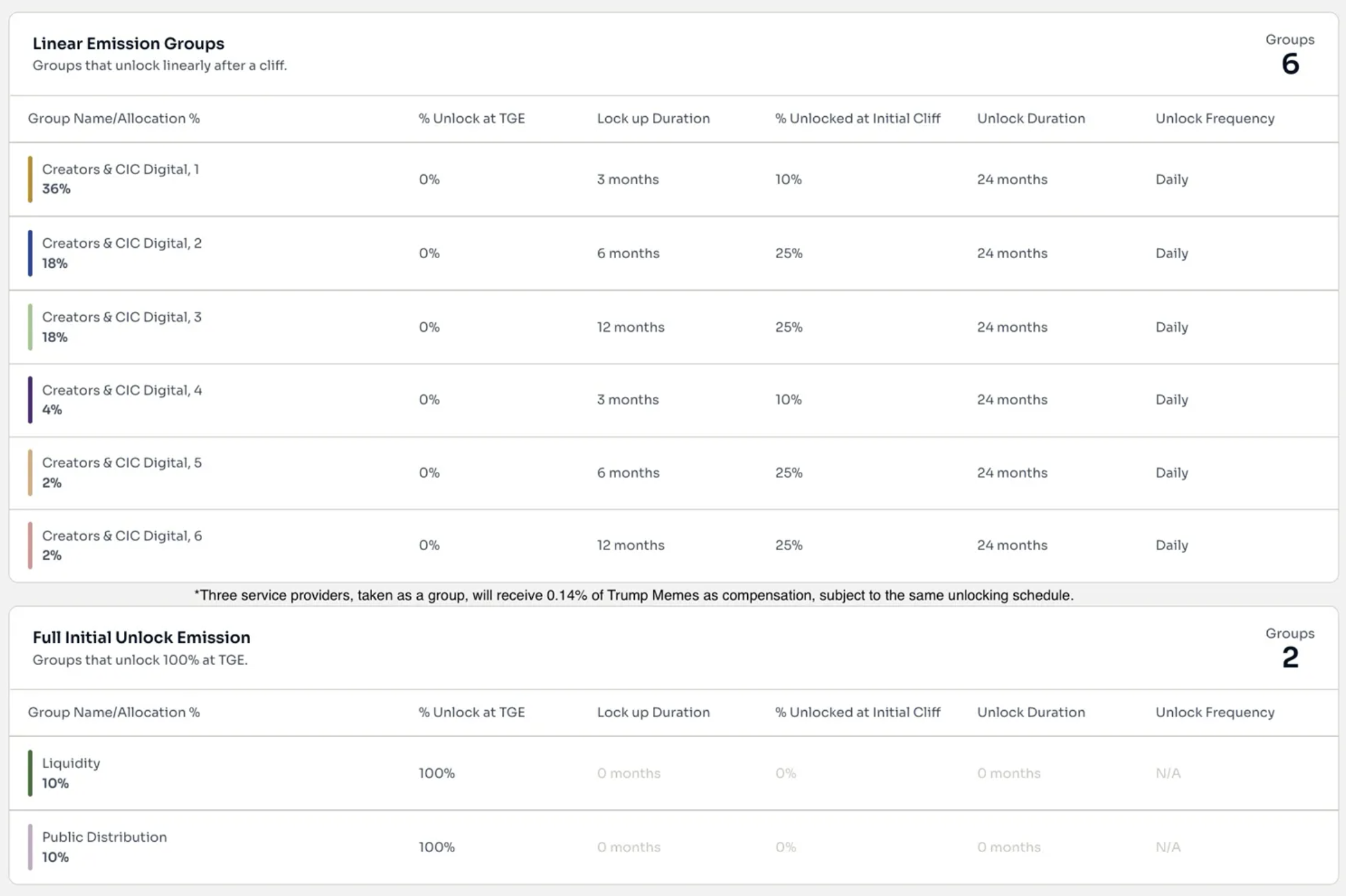 Овие групи се заклучени, и треба да помине одреден период додека можат да ги користат своите токени. Сепак, има две групи кои за кои што првите 200 милиони токени се на продажба уште од самото ланисрање на мим коинот. Тоа се групите за ликвидност и јавна дистрибуција.