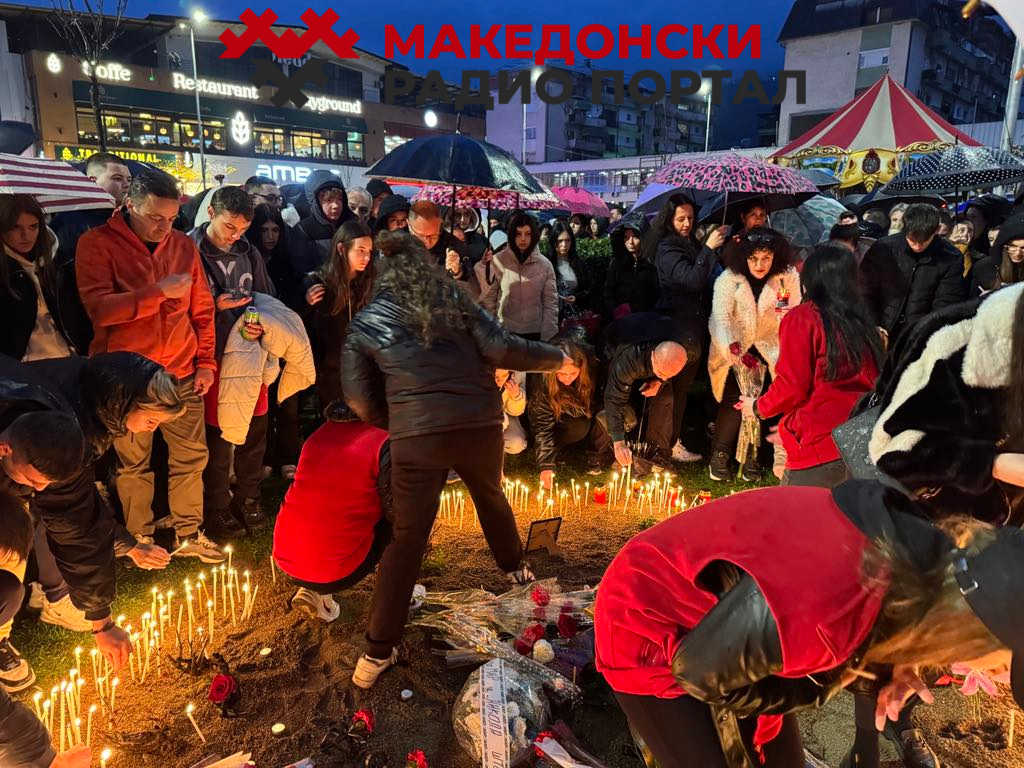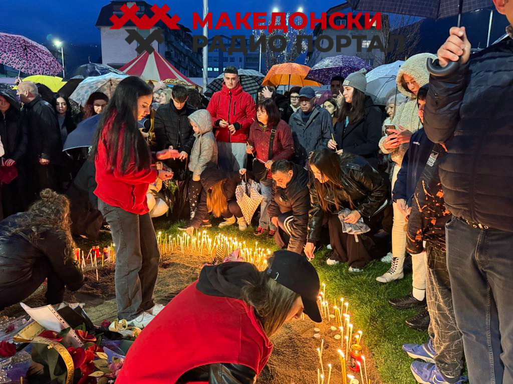 И покрај дождливото време како што беше најавено уште синоќа, вечерва околу 18:00 почна мирниот собир на тетовскиот градски плоштад на кои голем број на граѓани со цвеќе и свеќи ја изразија својата жалост и солидарност со кочанчани.