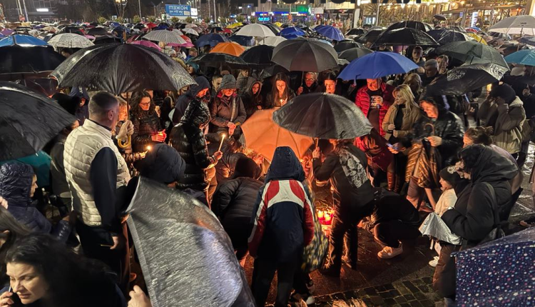 И покрај дождливото време како што беше најавено уште синоќа, вечерва околу 18:00 почна мирниот собир на тетовскиот градски плоштад на кои голем број на граѓани со цвеќе и свеќи ја изразија својата жалост и солидарност со кочанчани.