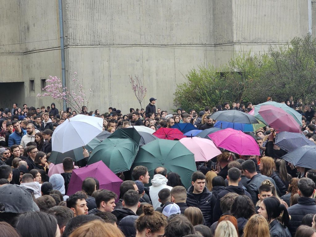 Дождот во Скопје не ги спречи илјадниците студенти да се соберат на општествениот кампус на УКИМ за да изразат почит кон настраданите во трагедијата во Кочани, каде животот го загубија 59 главно млади лица, а уште 150 се повредени од кои 45 во критична состојба.