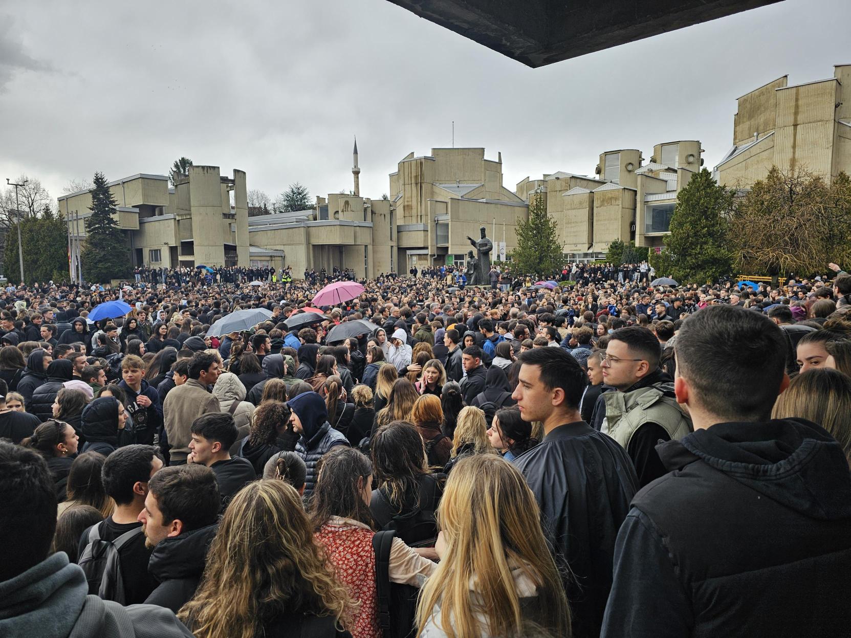 Дождот во Скопје не ги спречи илјадниците студенти да се соберат на општествениот кампус на УКИМ за да изразат почит кон настраданите во трагедијата во Кочани, каде животот го загубија 59 главно млади лица, а уште 150 се повредени од кои 45 во критична состојба.