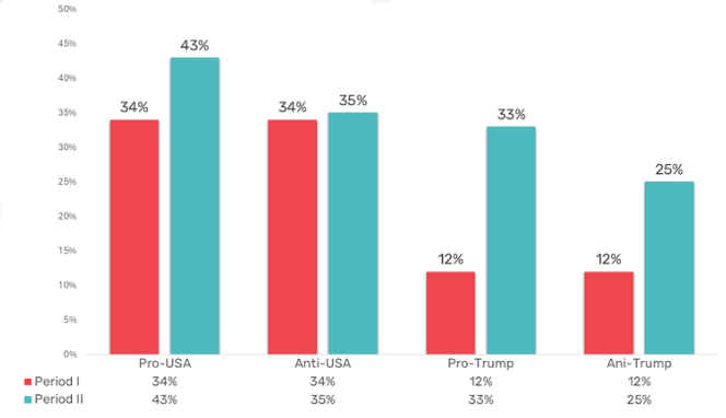 Во Србија, скептицизмот кон САД опстојува, но има забележителен пораст и на проамериканските и на про-Трамп наративите, откривајќи покомплексен медиумски пејзаж од очекуваното.