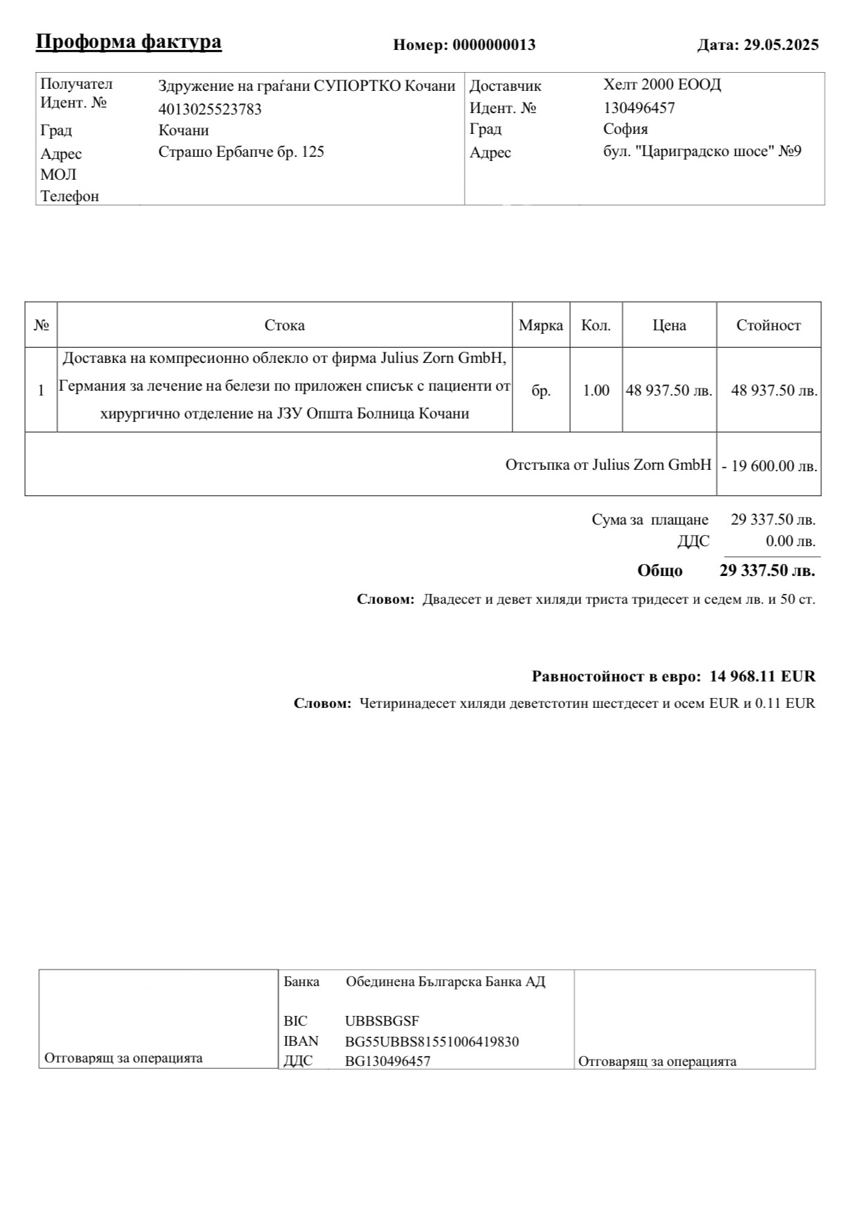Фото: „Сапорт Кочани“, Фактура за компресивна облека