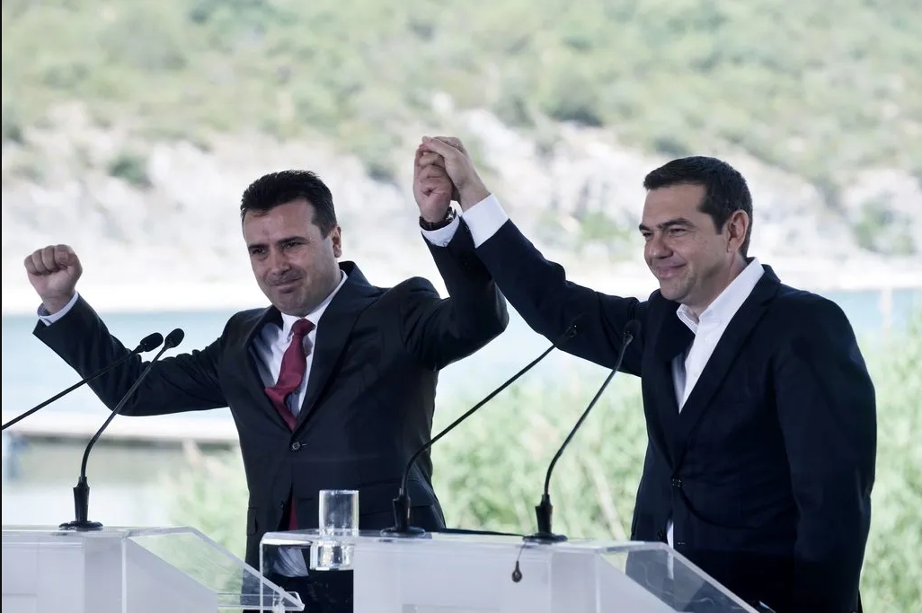 Овој компромис беше резултат на интензивна дипломатска активност, предводена од тогашните влади на СДСМ во Македонија и СИРИЗА во Грција. Документот го потпишаа министрите за надворешни работи Никола Димитров и Никос Коѕијас, во присуство на премиерите Зоран Заев и Алексис Ципрас. На церемонијата присуствуваа и посредникот во преговорите Метју Нимиц, поранешниот еврокомесар за проширување Јоханес Хан и тогашната висока претставничка на ЕУ Федерика Могерини.