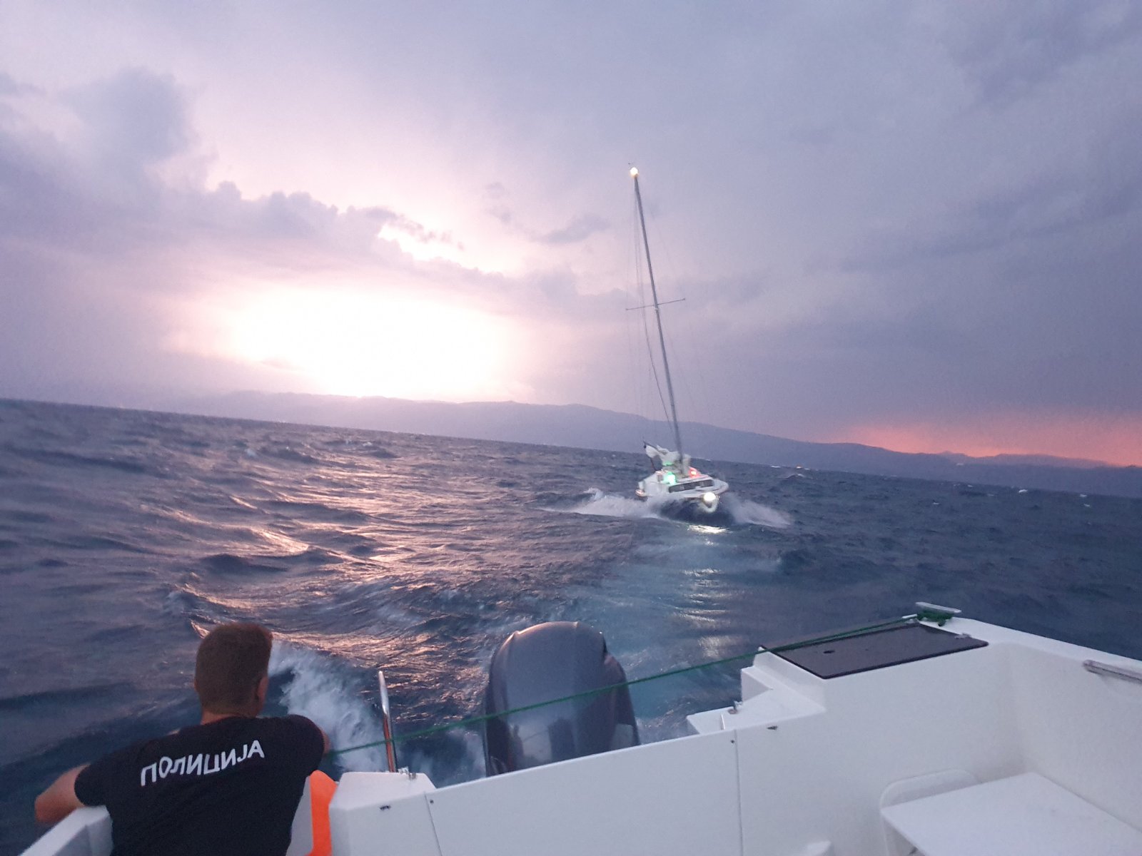 „Полициски службеници со службен глисер веднаш се упатиле кон посочената локација, каде се забележани четири лица на едрилица кои извикувале и барале помош. Преземени се неопходните мерки и лицата се безбедно пренесени во полициската станица кај каналот „Студенчишта“. Безбедно е извлечена и едрилицата на која, поради лошите временски услови со силен ветар и бранови, дошло до кршење на крмениот лист, по што, лицето кое ја управувало едрилицата, изгубило контрола врз пловниот објект“, наведено е во соопштението од СВР Охрид.