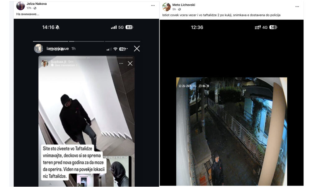 „Истиот човек вчера вечер и во Тафталиџе 2 по куќи, снимкава е доставена до полиција“, стои во друга објава.