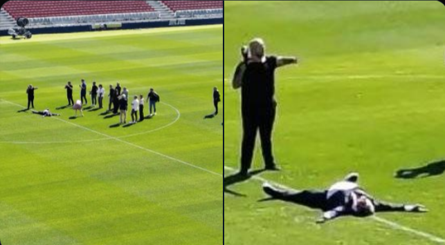 Шоу на Лапорта: Претседателот на Барса лежи на тревникот на “Камп Ноу“!(ВИДЕО)