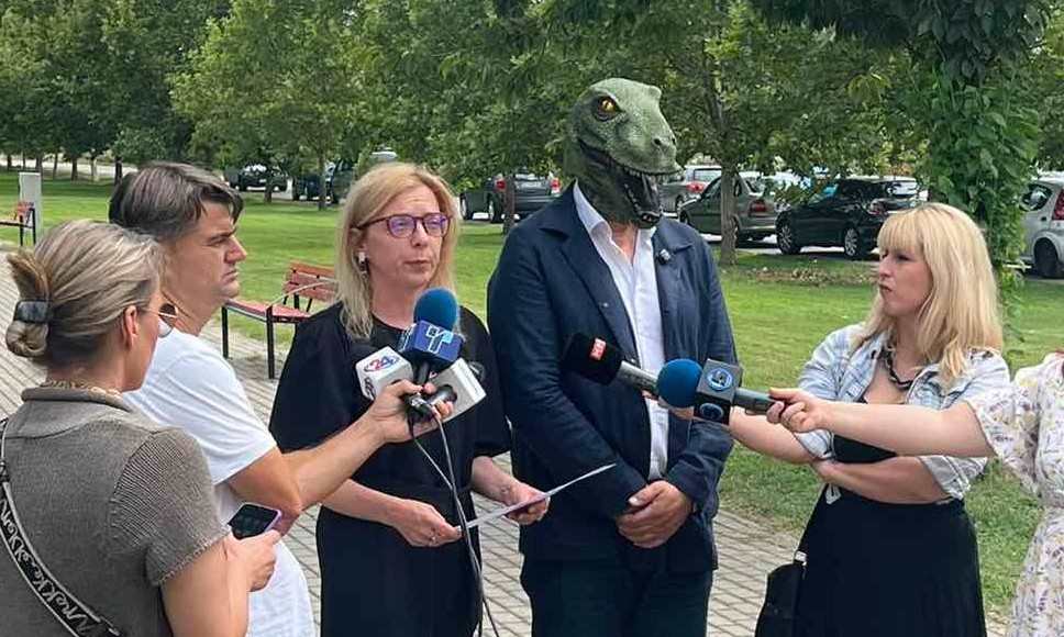 Професорот Марковски се појави на прес-конференција со маска од диносаурус