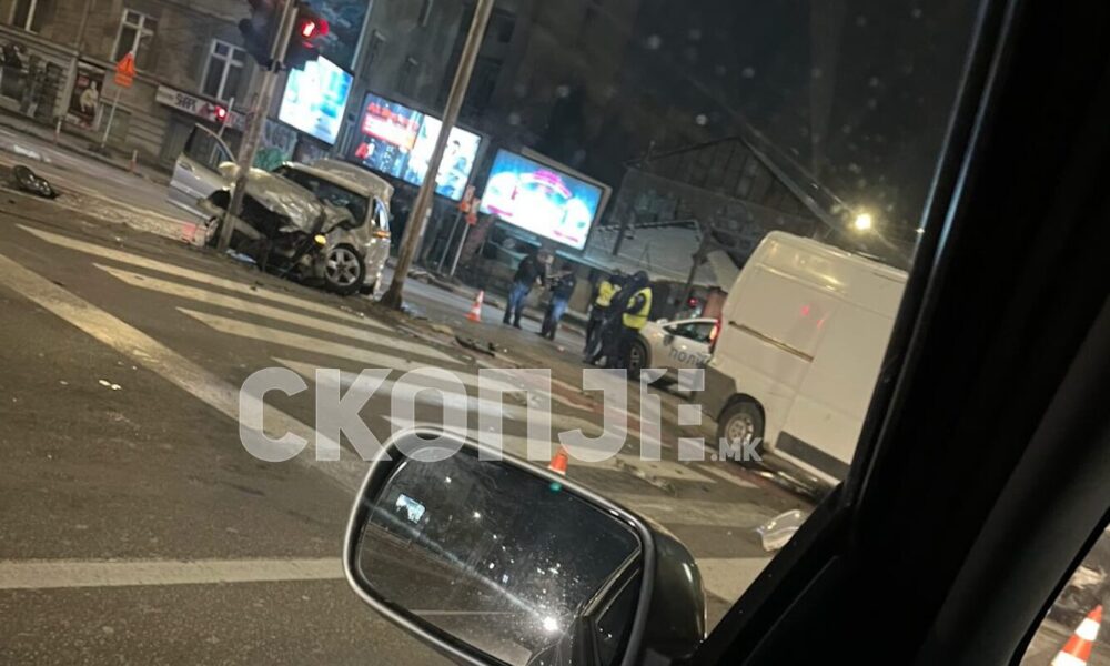 (Видео) Тешка несреќа во центарот на Скопје: делови од возилата распрснати по булеварот „Свети Климент Охридски“
