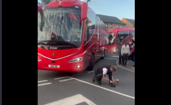 Клупските автобуси на Ливерпул стојат, а еве што прави навивачот! (ВИДЕО)