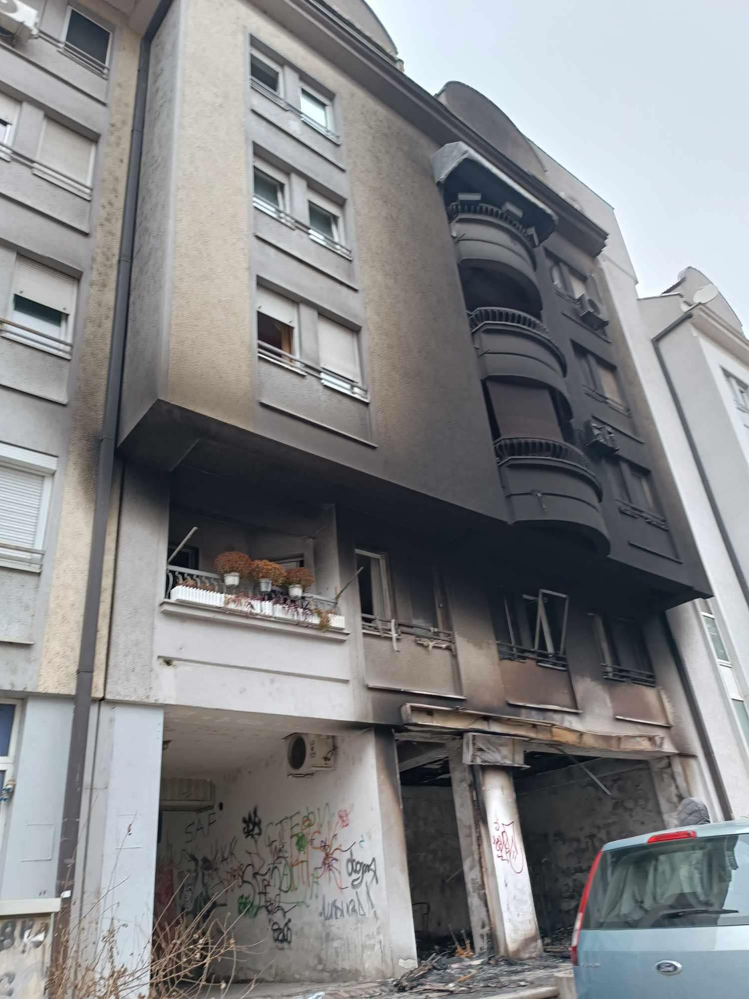 Од пожарот била зафатена фасада од зградата, делумно зафатен стан кој се наоѓал над бутикот, сопственост на М.Т. (36) од Скопје, потоа надворешна едниница на клима уред и дел од прозори на стан во сопственост на М.Ј.(79) од Скопје.