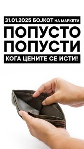 На социјалните мрежи се споделува и фотографија која повикува на бојкот на маркети на 31.01.2025 (петок) под мотото „Попусто попусти кога цените се исти“.